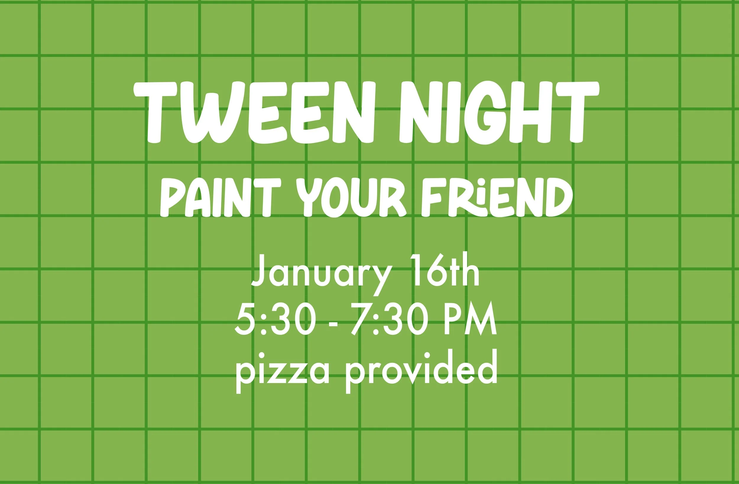Each month we offer recurring special events, such as Tween Night, Kids Night Out, Family Paint Night, and occasional weekend crafting events.