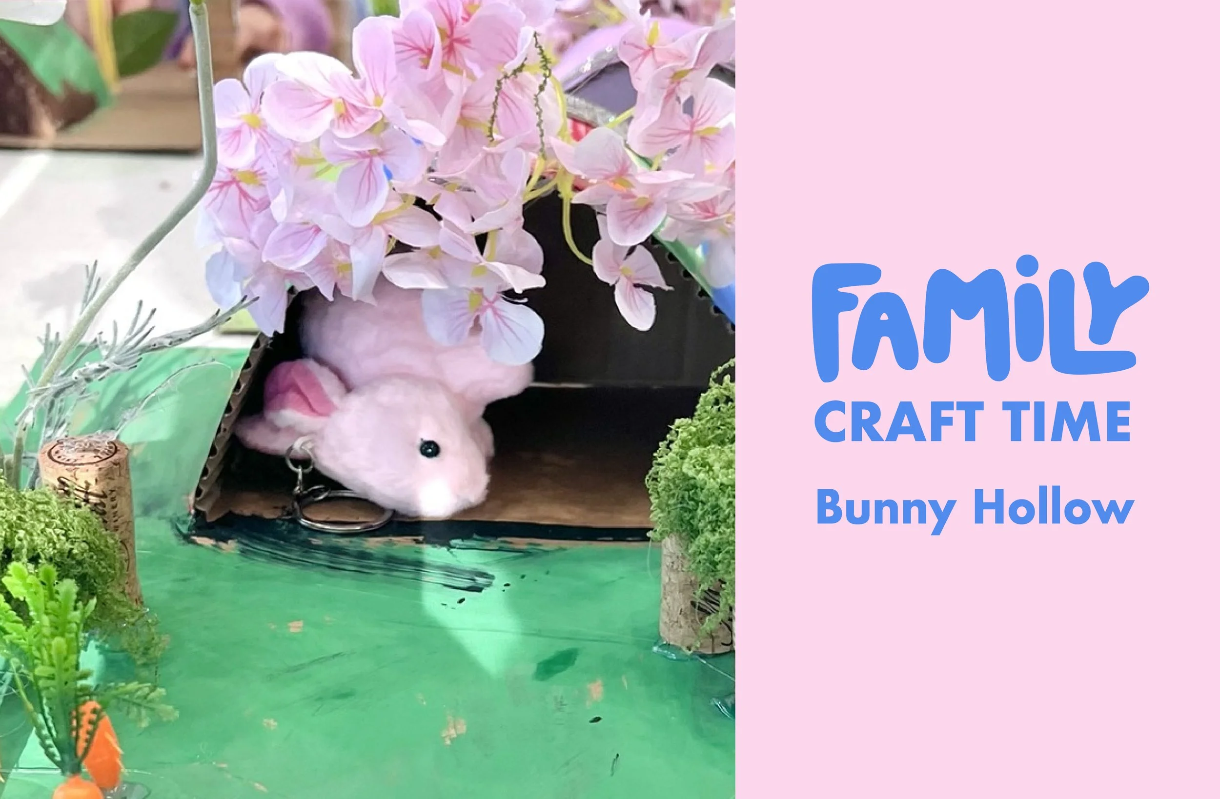 April 4th, 1-3 PM. All Ages! We will have an bunny burrow project, with a little bunny stuffy to adopt!